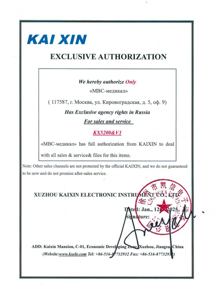 ООО "МВС-медикал" (г. Москва) - "Медицина/Ветеринария/Сервис". Официальный представитель Xuzhou Kaixin Electronic Instrument Co., Ltd. (China) в Российской Федерации по продаже и сервисному обслуживанию оборудования KAIXIN.